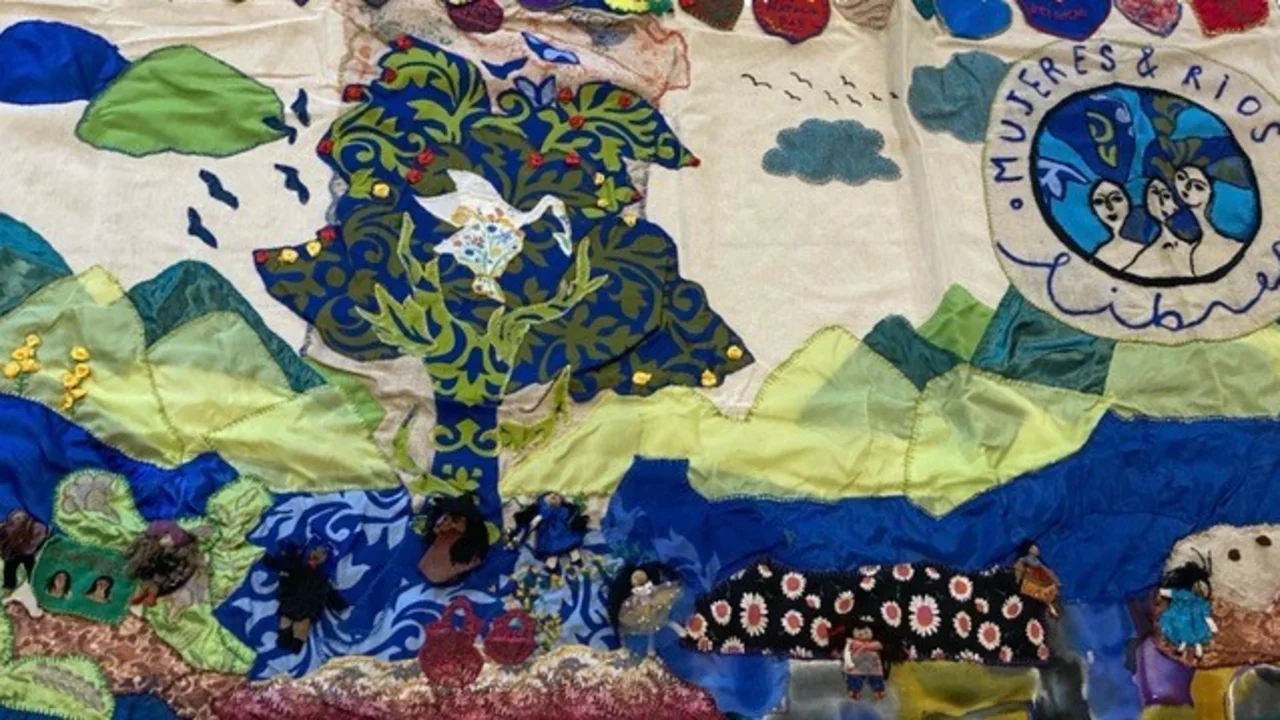 Foto: Bilderteppich vom Frauenkollektiv Mujeres libres, ríos libres, Chile
