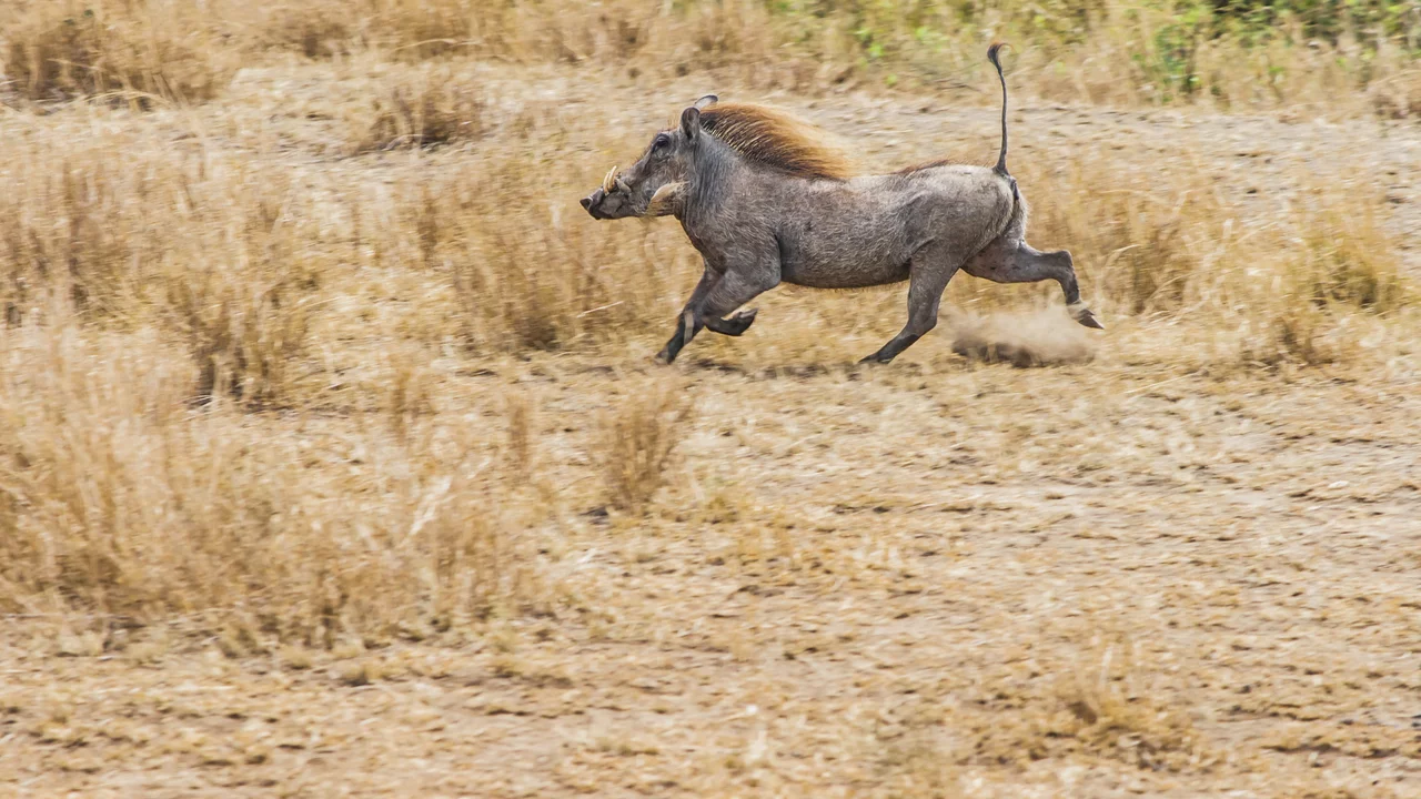 Das Warzenschwein hat viele Feinde. Deshalb ist es ständig auf der Hut. Im Film König der Löwen singt ausgerechnet das Warzenschwein Pumbaa: Hakuna Matata. Das ist Kiswahili, die Landessprache in Tansania, und bedeutet: Mach dir keine Sorgen.