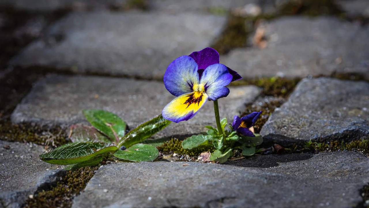 Dass das Veilchen überlebt hat und sogar blühen konnte. Das Veilchen hatte keine Chance zwischen den kalten Steinen, aber es hat sie genutzt.