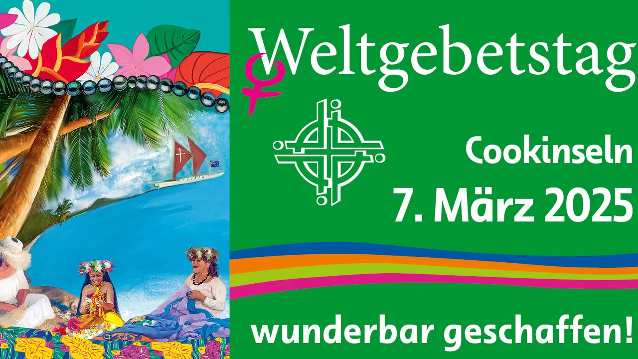 Und in diesem Jahr haben Frauen von den Cookinseln diese Texte, Gebete und Lieder vorbereitet. Wunderbar geschaffen – das ist ihr Motto für den Weltgebetstag. Das passt gut, finde ich. Denn ich denke bei dieser Aussage sofort an herrliche Sandstrände und Inseln mitten im Meer, die Cookinseln also. Aber es geht den Frauen nicht nur um die Natur, sondern auch um die Menschen, die ebenfalls wunderbar geschaffen sind! Es geht aber auch um die Bedrohung dieses Wunderbaren: ihre Maorikultur durften sie lange nicht leben, ihre Sprache nicht sprechen. Und das wunderbare Urlaubsparadies wird bedroht durch den Klimawandeln und das Ansteigen der Meerspiegel. Trotzdem wird in den Texten und Liedern eine sehr positive Sicht auf das Leben deutlich, wunderbar geschaffen eben!