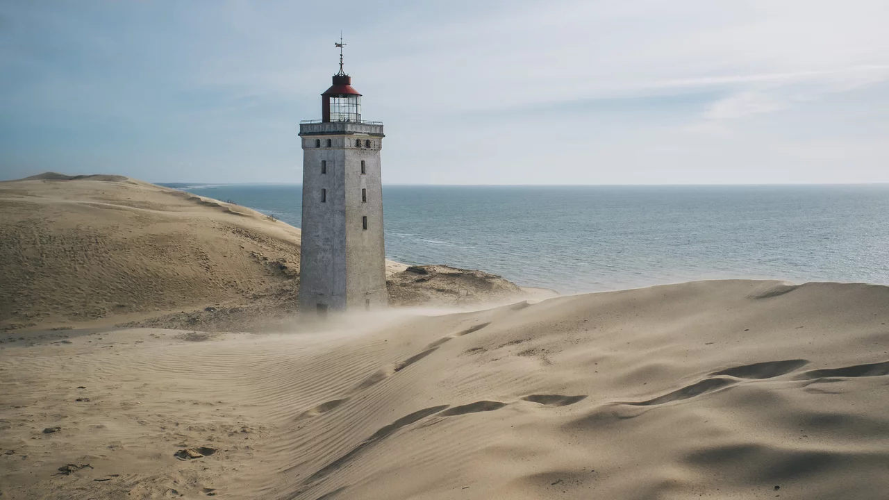 Ein Berg aus Sandkörnern. Das erinnert mich an eine Landschaft in Dänemark, die ich gerne im Sommer besuche. Dort gibt es einen alten Leuchtturm. Er steht an einer Steilküste, hoch über der Nordsee. Im Jahr 1900 in Betrieb genommen, erstrahlte sein Signal weit über das Meer – genauso wie es sein soll. Doch dann kam der Sand: Körnchen für Körnchen.