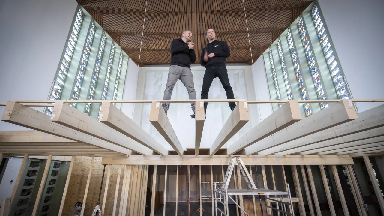 Bouldern ist ja ein sehr ruhiger, gediegener Sport einfach, der fast schon meditativ manchmal abläuft und dadurch bietet sich natürlich so ein ruhiger oder ein Raum der Stille perfekt an um zu bouldern. Das ist einmal ein wunderschönes Gebäude, was viel besser für eine Boulderhalle geeignet ist, weil es einfach so schön ist, als früher für eine Kirche. Man hat schon fast schon das Gefühl, die hätten es für uns irgendwie damals gebaut, weil es einfach optisch super ansprechend ist.